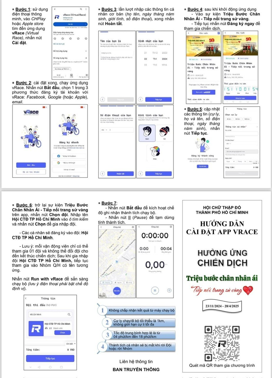 Chiến dịch được phát động trên nền tảng thể thao trực tuyến Vrace, nhằm kêu gọi sự tham gia rộng rãi của cán bộ, hội viên, tình nguyện viên, thanh thiếu niên chữ thập đỏ và cộng đồng.